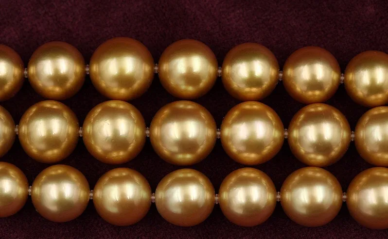 akoya也有金色珍珠,但都是淡金色,不会太浓,偏香槟金。还有一种澳洲金珠,只产于澳洲西北海岸的极小地区,非常稀少,市场上罕见。